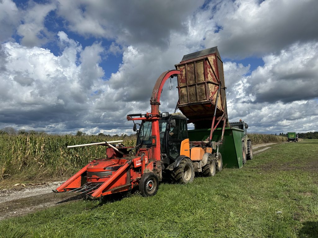 Hier ist unser Holder S130 zu sehen. Er wird in der Vatermaisernte eingesetzt um das Vatermais zu häckseln.